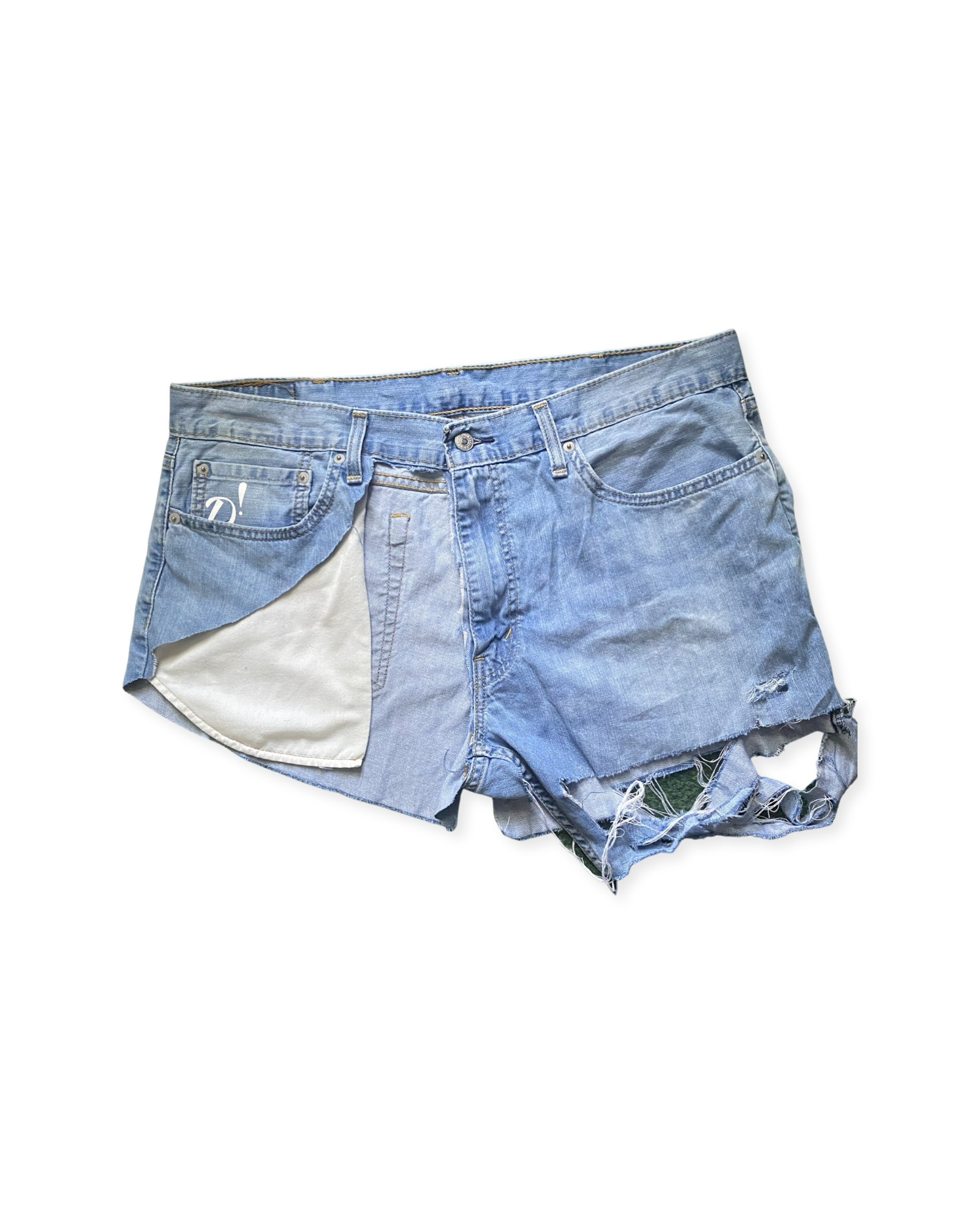PLEASE NOTE: EACH PAIR OF DENIM ARE ONE OF A KIND. ALL DISTRESSING, PAINTING AND EMBELLISHMENTS ARE DONE BY HAND. DENIM MAY VARY SLIGHTLY: VINTAGE/RECYCLED.