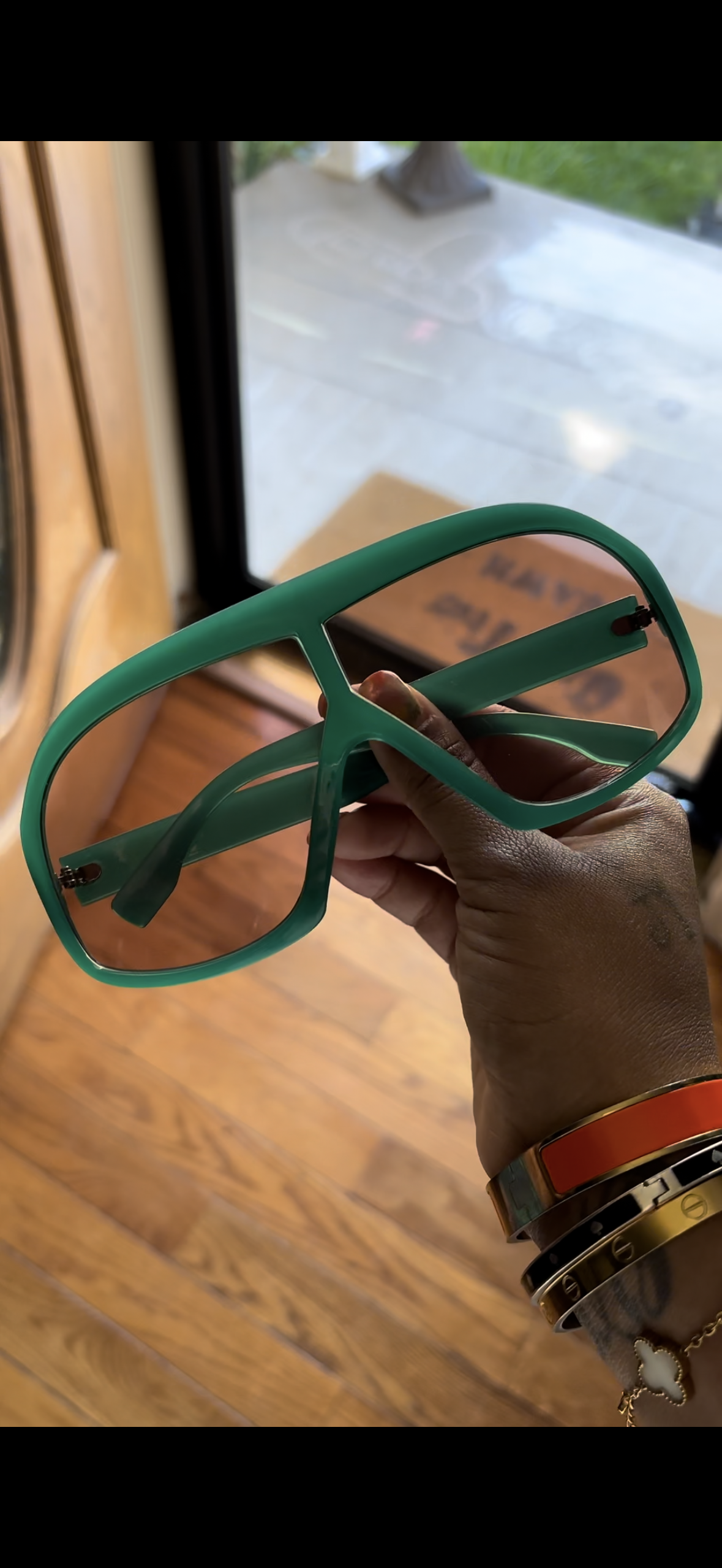 These green oversized frames add a touch of money to your look. Get noticed and make a statement with these quirky shades."