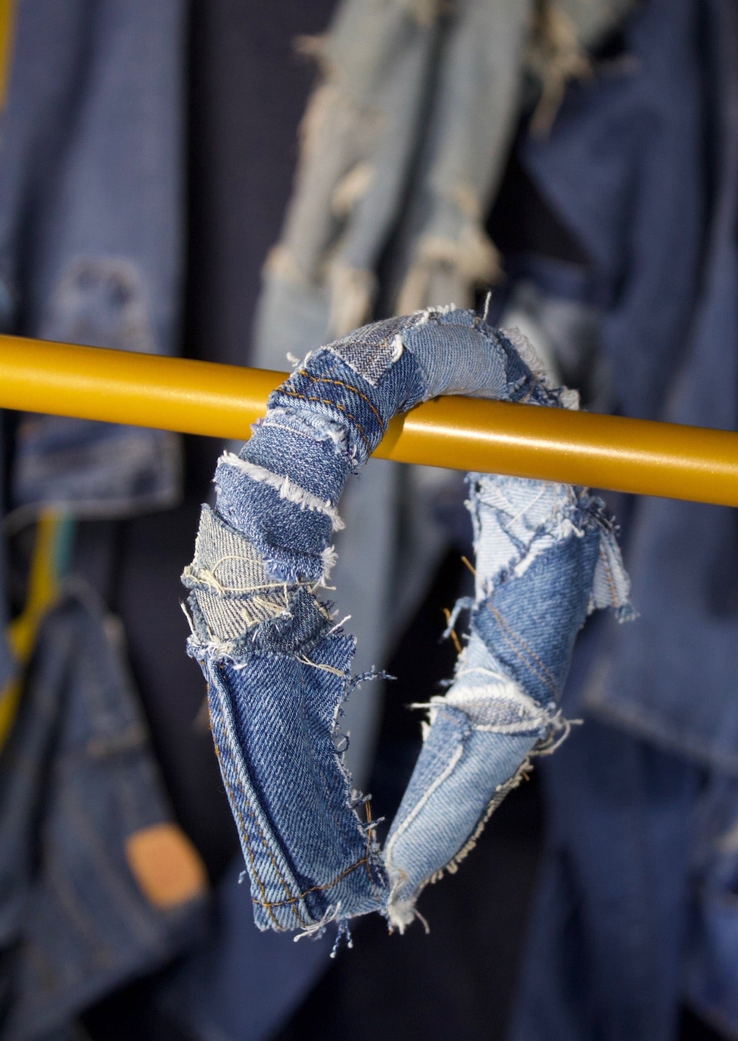Look good and feel divine in this hand-distressed patchwork denim halo! It's a contemporary take on a classic look - crafted with attention to detail and care, it'll keep your head in the clouds and your style on point!
