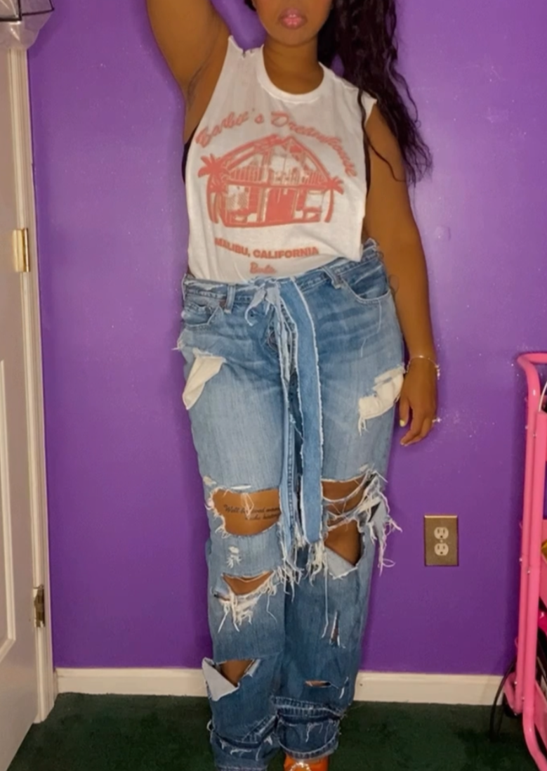 Strap yourself up in style with our Under Construction 🚧 Extended Denim! Made to provide a comfortable and fashionable fit, this distressed denim comes with a matching denim sting belt to complete your look. Out of this world style, with no construction required!
