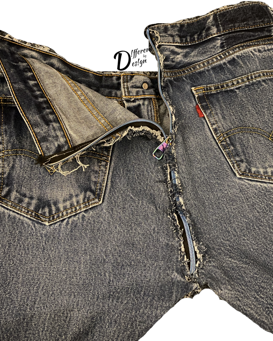Put a little zip in your step with Zip It denim jeans, hand-distressed for a unique look. The zipper butt design adds extra style to any outfit. Show off your fashion sense with these jeans, guaranteed to turn heads!